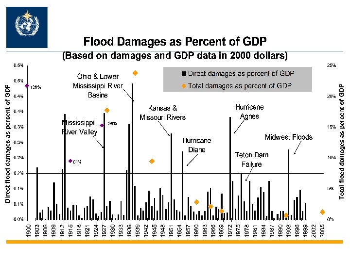 Reasons for changes in flood risk and vulnerability Land-use change, increasing exposure and damage potential – floodplain development, growing wealth in flood-prone areas (ii) Changes in Land-cover change - urbanization, terrestrial systems deforestation, elimination of wetlands and floodplains, river regulation (iii) Changes in Holding capacity of the atmosphere, climate and intense precipitation, seasonality, atmospheric circulation patterns system Source: Kundzewicz & Schellnhuber, 2004 (i) Changes in socio-economic systems