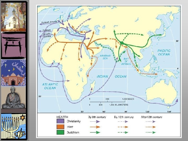 Cultural Diffusion • Culture hearth – religions spread through relocation and expansion diffusion (hierarchical or contagious) • Diffusion of religions