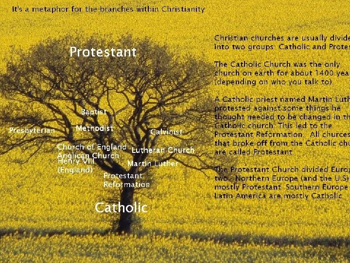 The Protestant Reformation § The Catholic Church was the only Christian Church from 400 a. d. until 1525 a. d. § In 1512 a young German priest named Martin Luther began to question “the sale of indulgences” and said that the church should only teach the things that were written in the Bible. He believed that people don’t need the ordinances of the church but only faith through which people could gain God’s grace. The sale of indulgences Martin Luther