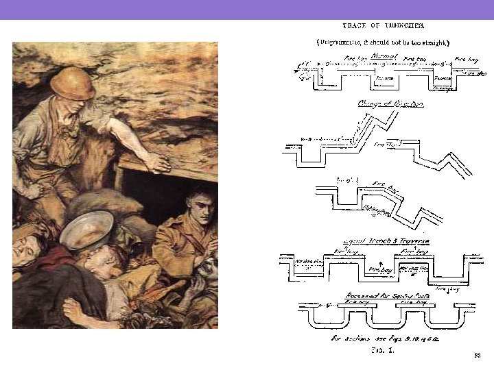 Trench Warfare WW 1 • What is trench warfare? • Trench warfare was used primarily in the Civil War and World War I. Soldiers would dig trenches and get into them to avoid enemy fire. Trenches had often poor conditions and many soldiers died from diseases because of the poor weather conditions and the rat’s • Trench life was terrible. The enemy would throw grenades and bombs that would make craters in the trenches