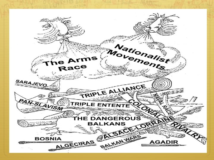 Nationalism had unified Germany and Italy and was becoming more and more popular The French wanted Alsace-Lorraine back from Germany In Austrian Empire = nationalism was creating the most violent tensions in Europe Pan-Slavism = Slavic nationalism Desire to unite all of the Slavic people under one empire