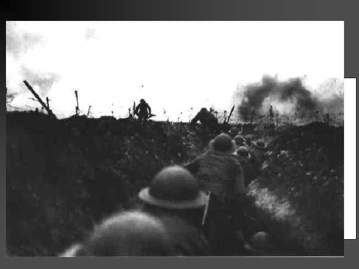 Trench Warfare n Both sides dug long trenches that faced each other. The trenches ran for miles. n From time to time, one side would attempt to cross the “No-Man’s Land” the area in between the trenches. n Trench warfare made WWI extend from a few months of fighting to four years of fighting
