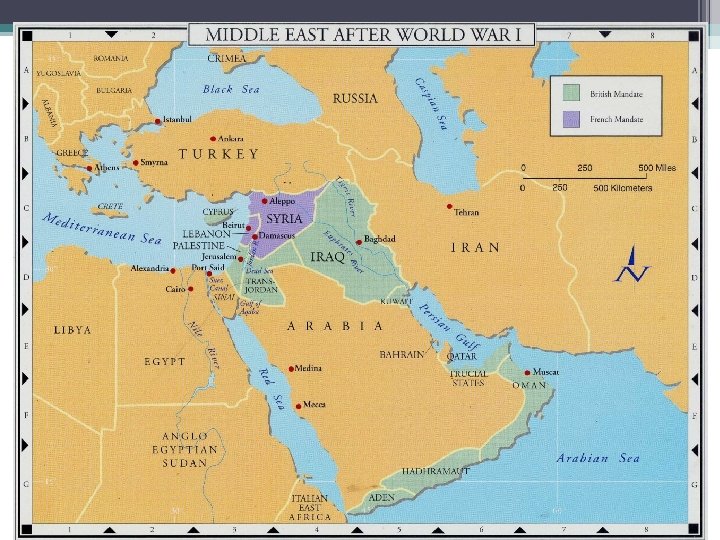 • Ottomans entered war in 1915 on side of the Central Powers: ▫ They wanted to acquire Russian territory. ▫ Turkey slaughtered millions of Armenians to get their land. • Britain wanted to protect trade routes to India: They promised the Arabs their own country if they would join with Britain against the Ottomans.
