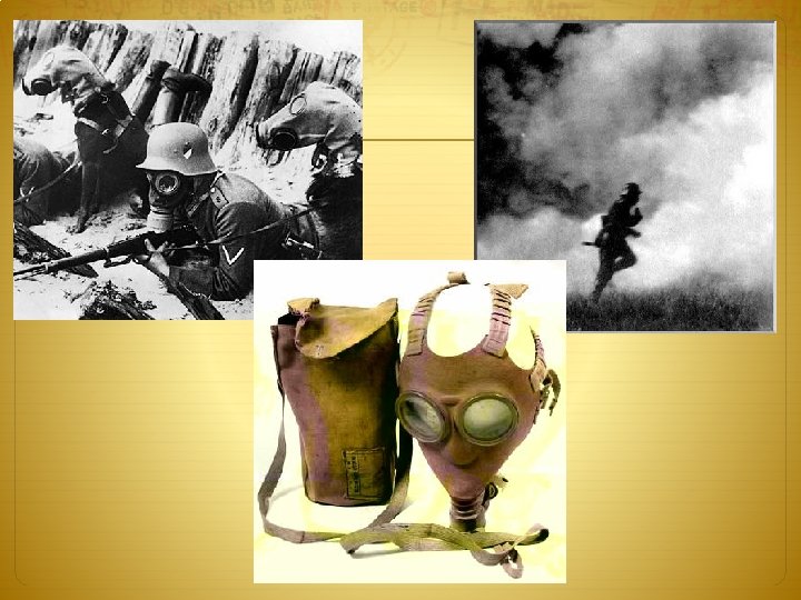 Military Aspects of WWI � New Weapons � Dirigibles (airships) � Submarines � Machine guns � Giant artillery guns � Tanks � Airplanes � Poison gas � Gas masks