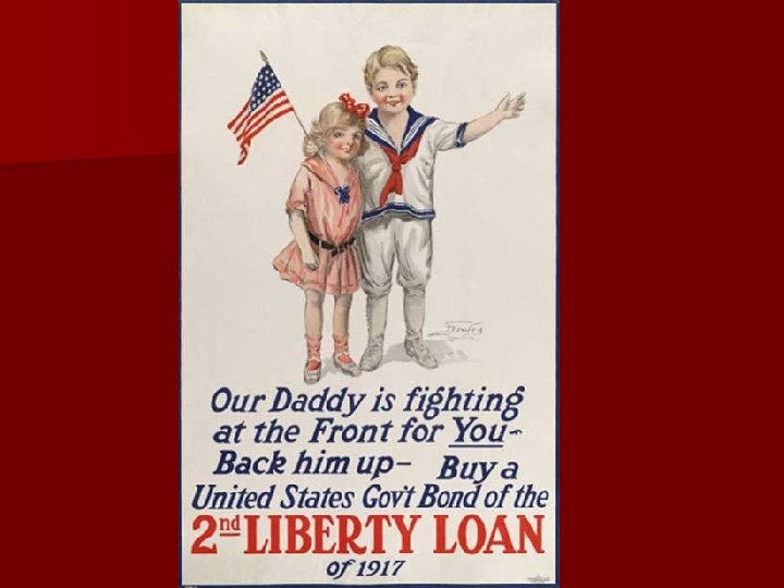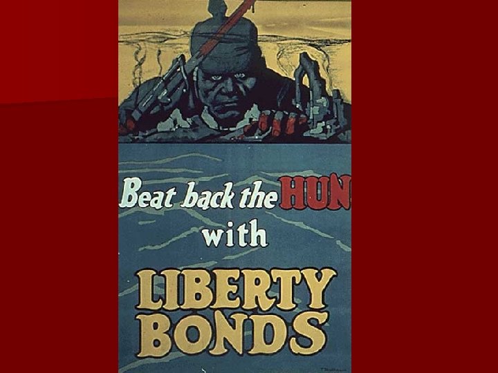 Homefront n Liberty Bonds - $20 million n Factories – commercial goods -> war goods n Lever Food and Fuel Control Act – Herbert Hoover controlled food pricing/rationing, daylight savings time n Fear of German-Americans n Sedition Act of 1918 – illegal to discuss anything disloyal about the U. S. government, army, navy