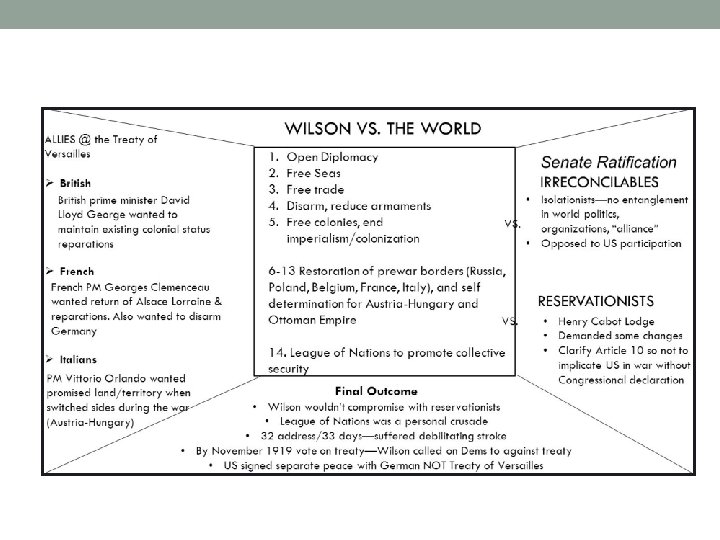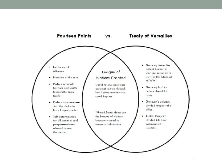 Conflicting Goals WILSON • Wanted a “peace without victory. ” This meant that he opposed punishing the defeated countries. • He hoped to build good relations between countries in order to prevent future wars. • What do you think about Wilson’s “peace without victory”? -------------------------------------------------------------- THE OTHER ALLIES: • Wanted REVENGE • Insisted on reparations from Germany, or cash payments, to pay for all the losses from the war. • They did not want Germany to be able to build on its army again. • They wanted Germany to accept ALL responsibility for the war. • Wait!!!!!!! But what country started the war? Do you recall? ?