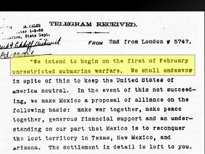Reasons for American Involvment… Cruise Ship Protect American Trade and Economy Telegram U-boat warfare