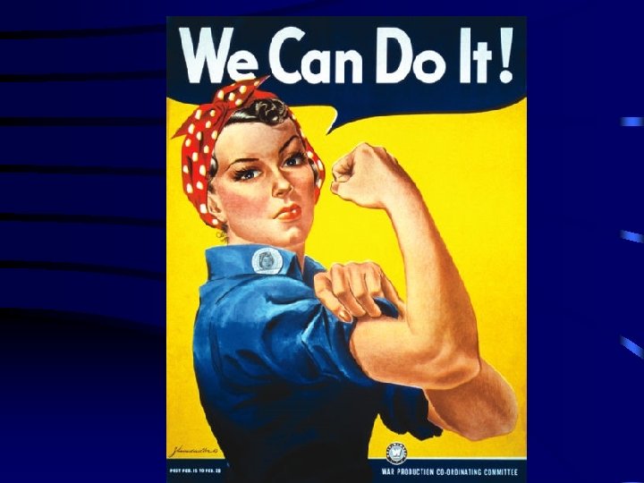 Industry during WWII • Many African. Americans & women work industrial jobs for the first time • Support for war time industries just as important as support for war itself • Women and Minorities proved they are just as capable in factory work as white men “Rosie the Riveter”