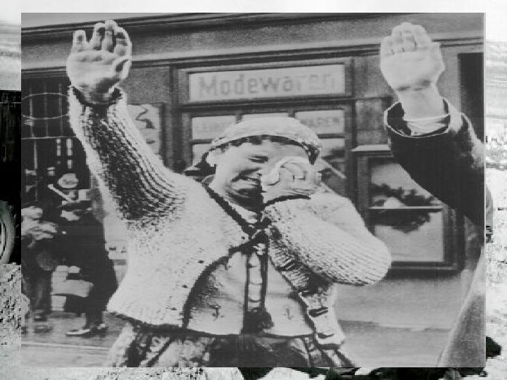 A Sudeten woman dutifully salutes parading Nazis, October, 1938. The Sudetenland was the portion of Czechoslovakia inhabited by over 3 million Sudeten Germans. Many of them became Nazis and strongly supported the acquisition of the Sudetenland by Hitler. (Photo credit: U. S. National Archives)