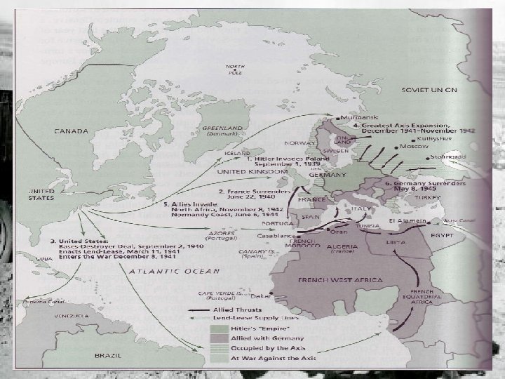 VIII. The German Blitzkreig Germany continued: In April 1940 attacked Norway & Denmark In May 1940 attacked Netherlands, Belgium, Luxembourg, & France British & French troops were almost trapped on the beaches of Dunkirk but evacuated 330, 000 troops just in time By late June, France signed armistice with Germany http: //news. bbc. co. uk/1/shared/spl/hi /europe/02/euro_borders/html/5. stm