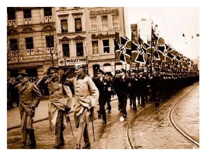 I. First Steps of Nazi Aggression Hitler & most Germans believed the Treaty of Versailles to be humiliating & the cause of Germany’s economic problems Hitler slyly convinced Germans with his rage and rants, arousing fear & nationalism In 1935, Hitler openly rearmed: Air force & military France, Great Britain, & Italy condemned Germany, but no action by League of Nations Warnings were made but Great Depression caused internal problems