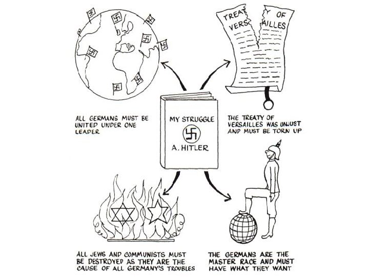 Hitler’s Convictions Hitler’s plan for Germany summarized in “Race and Space” 1. Uniting German speaking people with Germany 2. Racial Purification – Aryan master race 3. Expand the borders of Germany for more land resources.