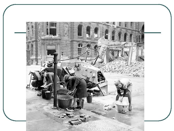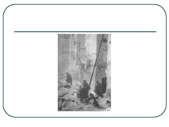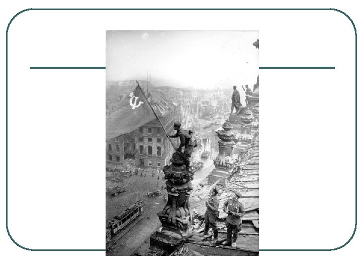 MAJOR EVENTS, WORLD WAR II, BATTLE AND FALL OF BERLIN l l l 1. LAST OF BATTLES, BLOODIEST 2. 3 USSR MIL GROUPS ATTACKED GERMANS DEFENDING BERLIN, CAPITAL OF GERMANY 3. 81, 116 USSR TROOPS DIED, 458, 080 GERMANS DIED 4. HITLER AND FOLLOWERS COMMITTED SUICIDE 5. BERLIN SURRENDERED MAY 2, 1945 6. FIGHTING CONTINUED TO MAY 8 AS GERMANS MOVED WEST TO SURRENDER TO US AND UK RATHER THAN USSR
