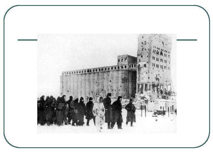 MAJOR EVENTS OF WORLD WAR II, BATTLE OF STALINGRAD l l l 1. TURNING POINT, 1942, 1943 2. USSR LOST 1 MILLION SOLDIERS 3. USSR PUSHED WEST INTO GERMANY. 4. RUSSIAN-SOVIET WINTER AND COUNTERATTACKS 5. GERMAN REFUSAL TO RELENT