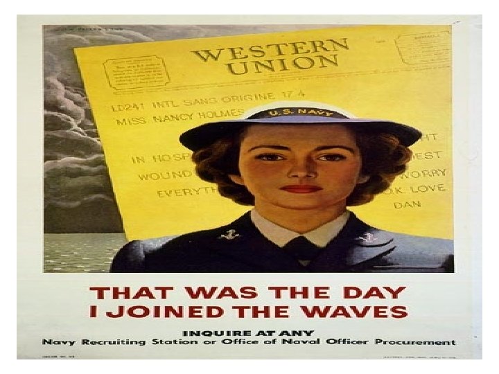 Minority Participation • African Americans served in segregated units • Tuskegee Airmen (African American) served in Europe with distinction • Nisei regiments (Asian American) earned a high number of decorations. • Navajo used oral codes which were impossible for the Japanese to break. • Minority units suffered high casualties and won numerous citations.