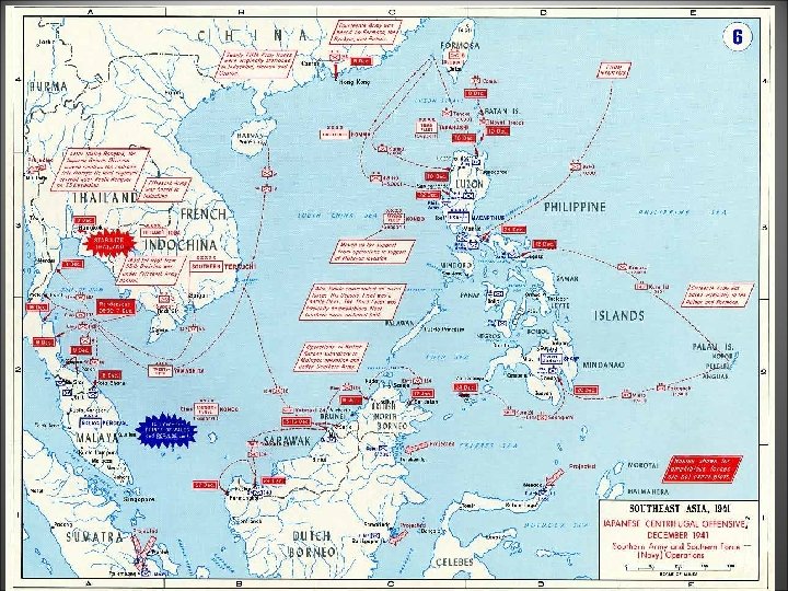 Fall of the Philippines • Shortly after Pearl Harbor the Japanese made initial landings on Luzon, then made their main landings on Dec 22 • On Dec 24, Mac. Arthur ordered his forces to withdraw to the Bataan Peninsula • By Apr Bataan surrendered • By early May Corregidor surrendered Douglas Mac. Arthur in his headquarters tunnel at Corregidor in March 1942