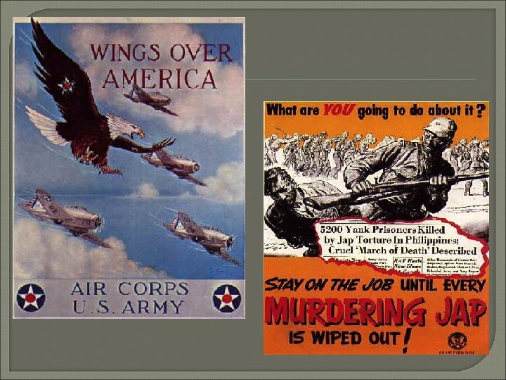 Fear Appeal … poster 7 of 10 “These posters rock people out of their complacency with grim, unromantic visions of war. They depict the human cost of war, confronting the viewer with corpses, bloodshed, and gravestones…. These images appeal to darker impulses, fostering feelings of suspicion, fear, and even hate. ” Source: Nat’l Archives Exhibit on U. S. in WWII http: //wae. clever. net/webcat/powers. ht m American WWII propaganda poster