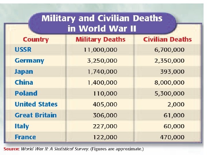 The Battle of Stalingrad � German commanders were ordered to secure the oil-fields in Caucasus. -Hitler orders troops to take Stalingrad � Stalin orders Soviet troops to take “not a step backwards”. � This was one of the most brutal battles of WWII. -Hand-to-hand combat -Germans are trapped in Stalingrad over the winter in below zero temperatures and limited supplies. � The battle of Stalingrad holds the highest number of casualties in a single battle in human history. -The Germans suffered close to 850, 000 casualties -The Russians suffered close to 1, 128, 000 casualties � All German troops surrendered on February 2, 1943 � This is a major turning point in the war.