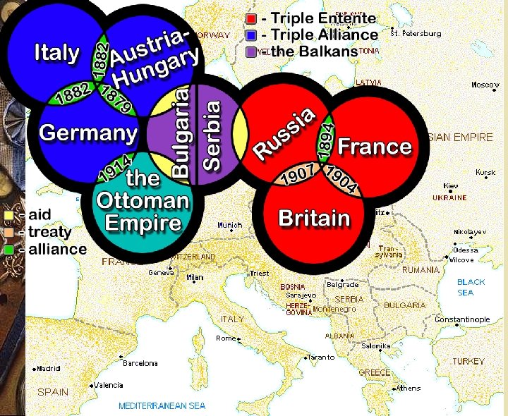 Taking Sides w Allied Powers – – Great Britain France Russia Serbia Eventually the U. S. entered on the Allied side w Central Powers – Germany – Austria-Hungary – Ottoman Empire