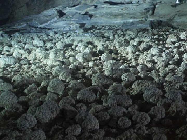 Rare cave pearls fill dried-out terrace pools near the Garden of Edam in Hang Son Doong. This unusually large collection of stone spheres formed drip by drip over the centuries as calcite crystals left behind by water layered themselves around grains of sand, enlarging over time.