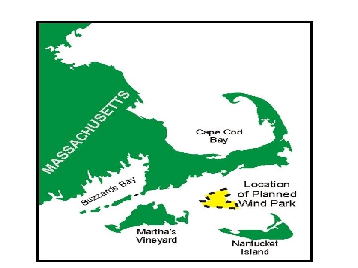 Cape cod • 130 wind turbines • 420 megawatts • 3/4 of the Cape and Islands electricity needs • The late Senator Kennedy and the candidates for his seat.