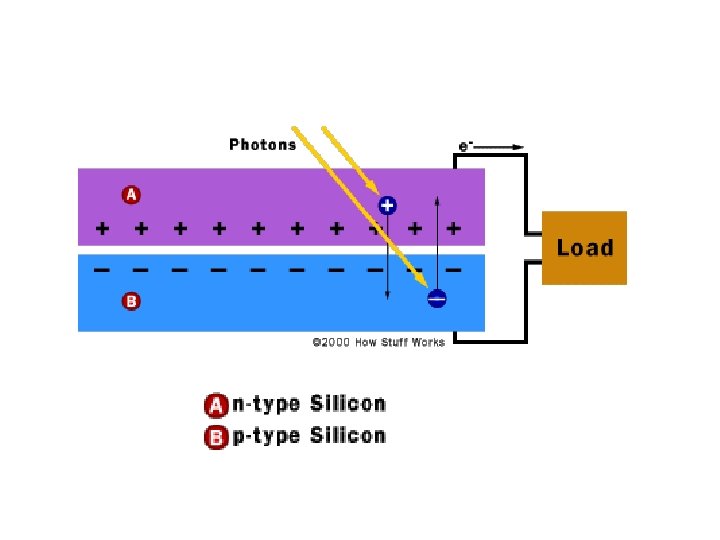 Solar cells • For use at site of power use • Integration of solar energy into the electrical grid • Semi-conductor – – – Absorb photon Excite electron into conduction band Mobile electron holes directional flow of electrons An array of solar cells produce a usable quantity of direct current (DC) – Store the charge that is produced