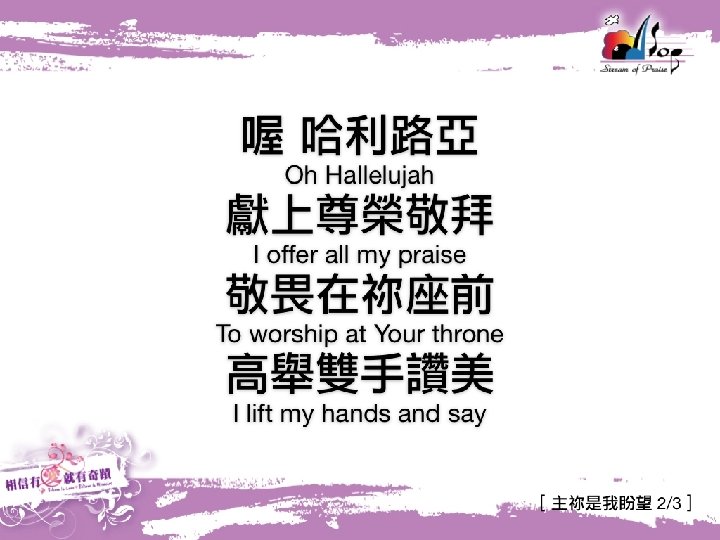 For there I find You waiting 你在殿中等候我 And there I find release 釋放我得自由 So with all my heart I’ll worship 我用全心用力敬拜 And unto You I’ll sing 向你獻上讚美
