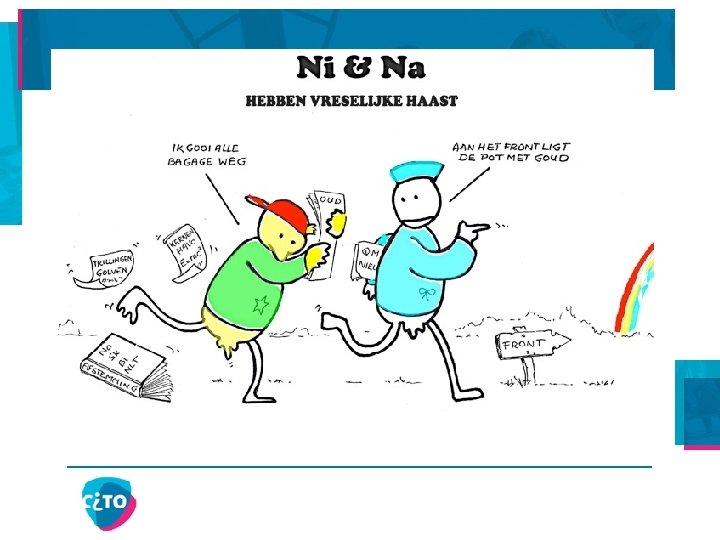 Betrokkenen • Vernieuwingscomm issie (VNC) • Pilotdocenten • Veld: alle natuurkunde docenten • Cv. E vaksectie • Moduleschrijvers • Cito medewerkers • CG leden van Cito • Vakverenigingen: NNV/NVON • Uitgevers • SLO evaluatie en uitrol