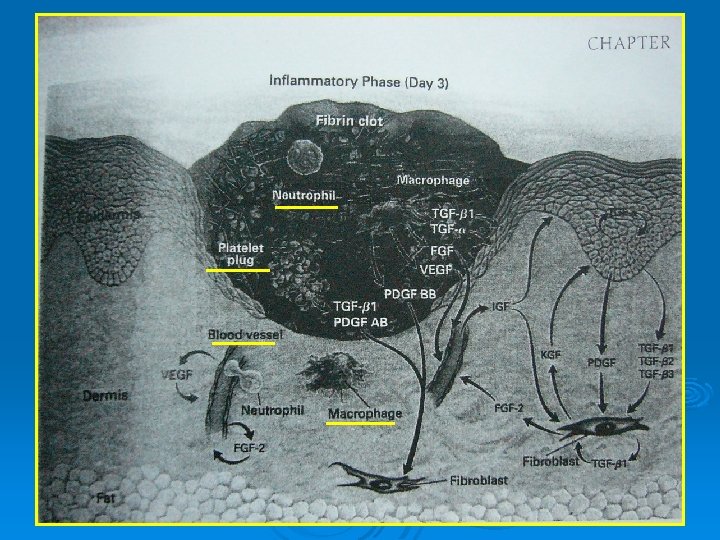 (一) Inflammatory phase Ø Hemostasis Ø Vascular permeability Ø Cellular recruitment 3 days, except infection