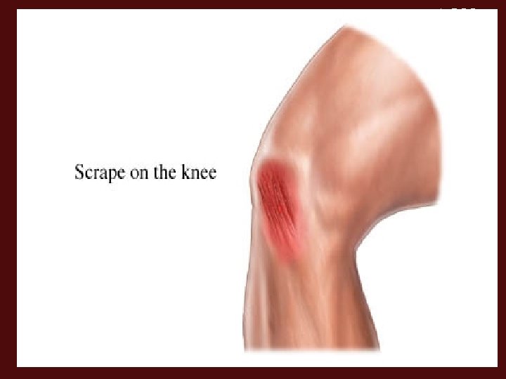 ABRASION CAUSE: Something rubbing against the skin. DO THEY BLEED A LOT? Not usually. Damage is to Capillaries. EXAMPLES: SCRAPE
