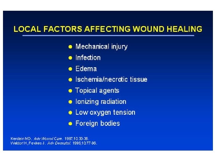 Factors worth addressing • • • Personal hygeine Smoking Diabetes Substance abuse Vascular issues Foreign body in wound (retained stitch) Positioning issues Family support Educating the patient regarding the wound