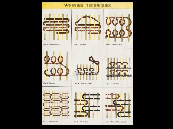 Now it’s yo turn to be a Masta Weaver! • In this unit : • You’ll get to learn about the history of weaving. Say fancy art words like “warp, weft, and loom. ” • you’ll create a woven pouch by using various weaving techniques. You must include Tabby (plain) weaving technique along with 2 other techniques of your choice. • Think about what kind of patterns you’d like to create using color and techniques. • You will be creating a functional piece of art that can be used to store your phone, i. Pod, jewelry, coins, or anything you’d like.