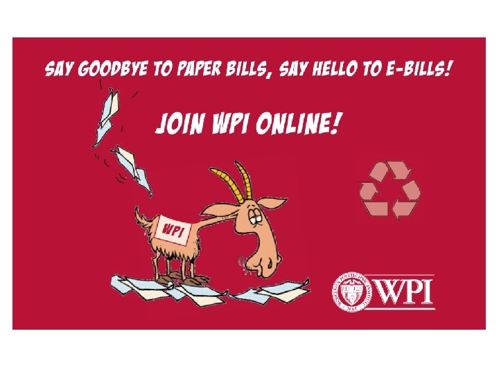 E-Bill • e-mailed to student @ wpi. edu address • Student is responsible for setting up parent or others as “Authorized User” • Future e-Bills will be sent to student and Authorized Users