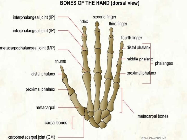 Joints • • • Distal radioulnar Carpal Carpometacarpal Metacarpalphalangeal (MCP) Interphalangeal (PIP and DIP)
