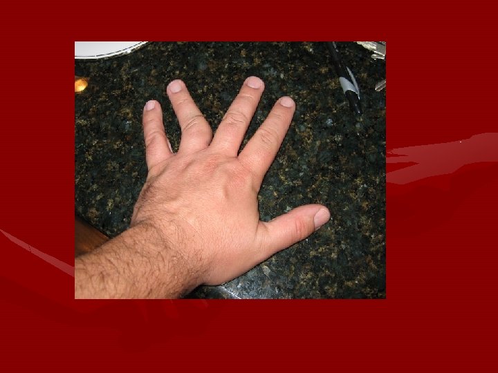 • S/S: • POT over the metacarpal involved • Palpable defect in the shaft of the 5 th metacarpal (or other metacarpals) • Swelling • Discloration • Pain with movement