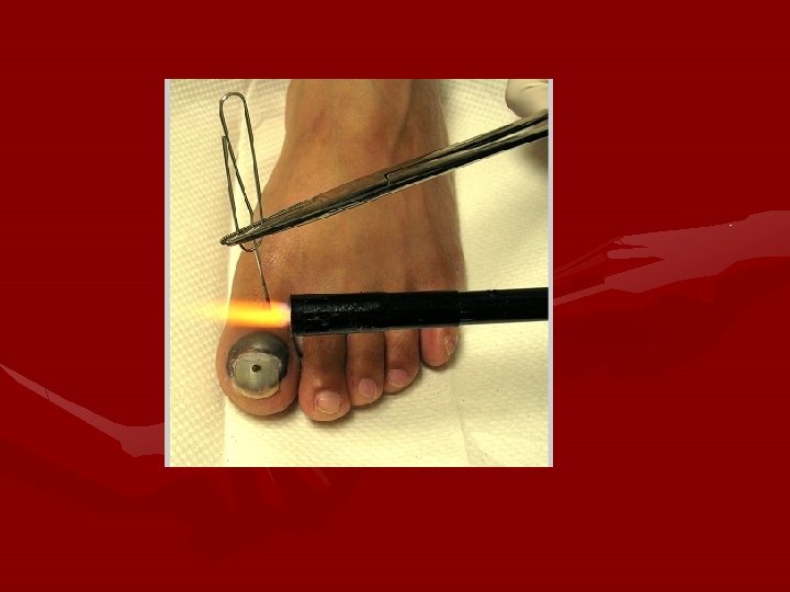 Subungual Hematoma • MXN: direct blow to the fingernail • S/S: throbbing pain due to accumulation of blood under the nail • TX: ice (water) to numb, release pressure under nail by drilling/burning a hole it the nail