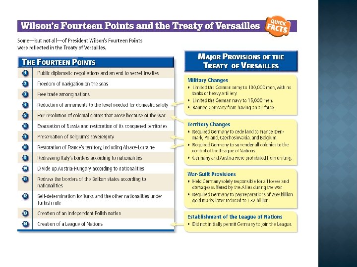 US President 14 points USA joined the war in 1917 Tried to be fair to Germany