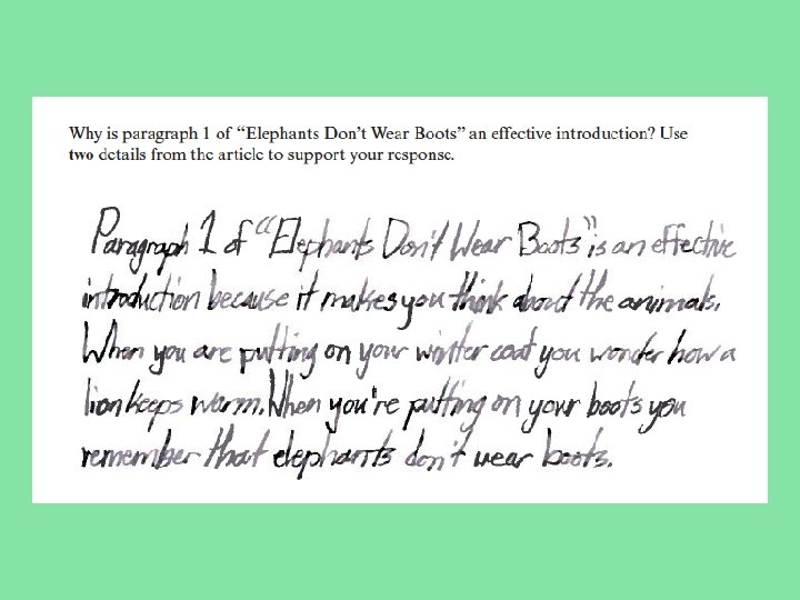 “Have A Go” Let’s quickly look at a response from “Elephants Don’t Wear Boots” • What do you notice about this kind of writing?