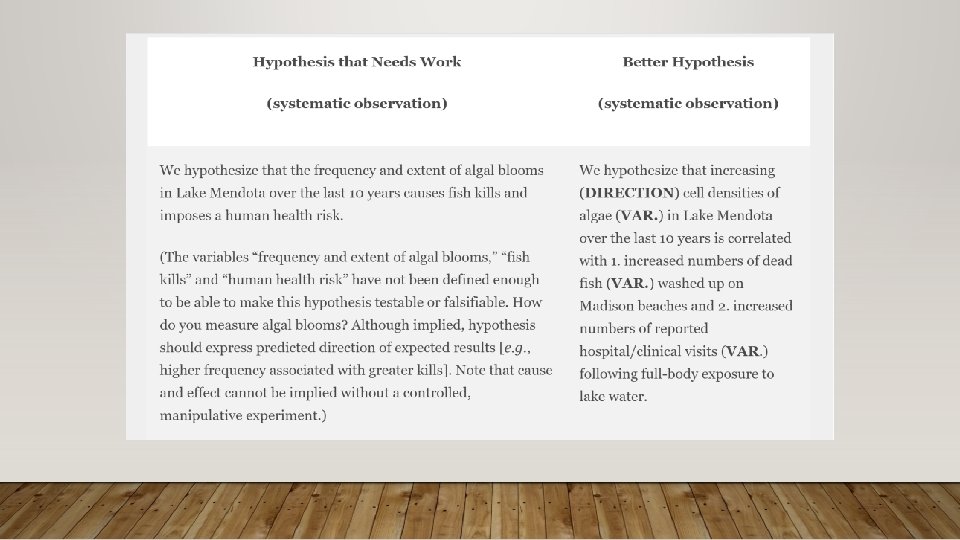 HOW TO CONSTRUCT A SOLID INTRODUCTION TO A SCIENTIFIC PAPER • If you are doing a systematic observation, your hypothesis presents a variable or set of variables that you predict are important for helping you characterize the system as a whole, or predict differences between components/areas of the system that help you explain how the system functions or changes over time.