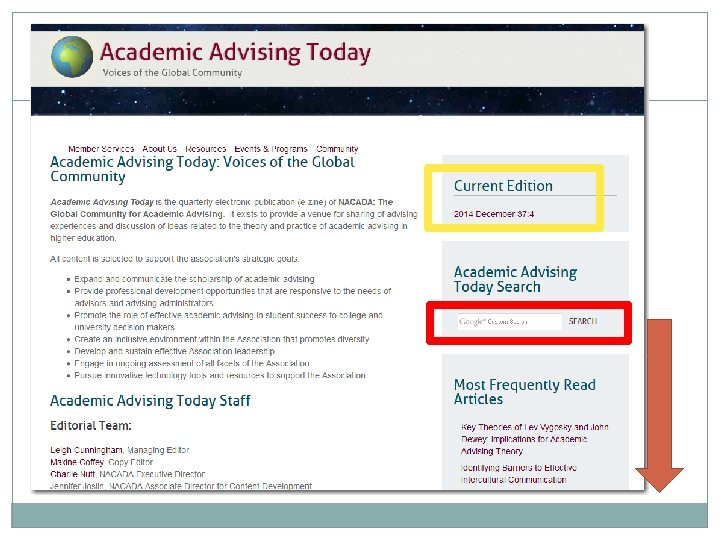 Journal Purpose • Professional publication § Blind-reviewed § Peer-refereed • Published biannually • Scholarly articles on research, theory & practice • Book reviews The NACADA Journal exists to advance scholarly discourse about the research, theory, and practice of academic advising in higher education. NACADA members receive a print copy. All articles can be accessed at www. nacadajournal. org. Download the mobile app!