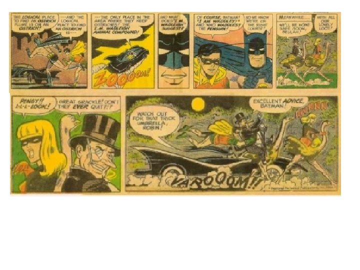 Now repeat the C and the E ! One struggle in the story that Batman faces is trying to defeat the Penguin. For example, Batman tries to catch Penguin when he climbs up the ladder. This shows that he is trying to keep him from leaving so he can stop him from getting away with the money. The comic strip also shows Batman and Robin tracking down Penguins hiding spot. This shows that Batman has not given up, and plans on catching Penguin to stop him from getting away with crime.