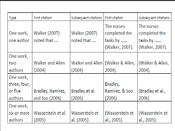 Six or More Authors Alex et al. (2005) clarified the results by………. . They clarified their results by…. (Alex et al. , 2005). The Writing Centre St. FX University�