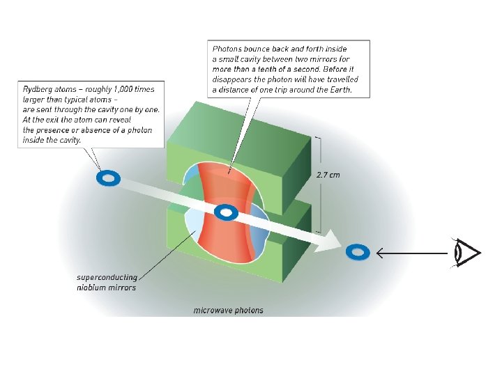 Quantum non-demolition measurement (QND) Die Energien von Atomübergang und Photon sind sehr verschieden, dadurch kommt es nur zu einer Phasenverschiebung aber keiner Absorption Überlagerungszustand Atom fällt durch Kavität Rücksetzen des Überlagerunszustandes Photoionisation