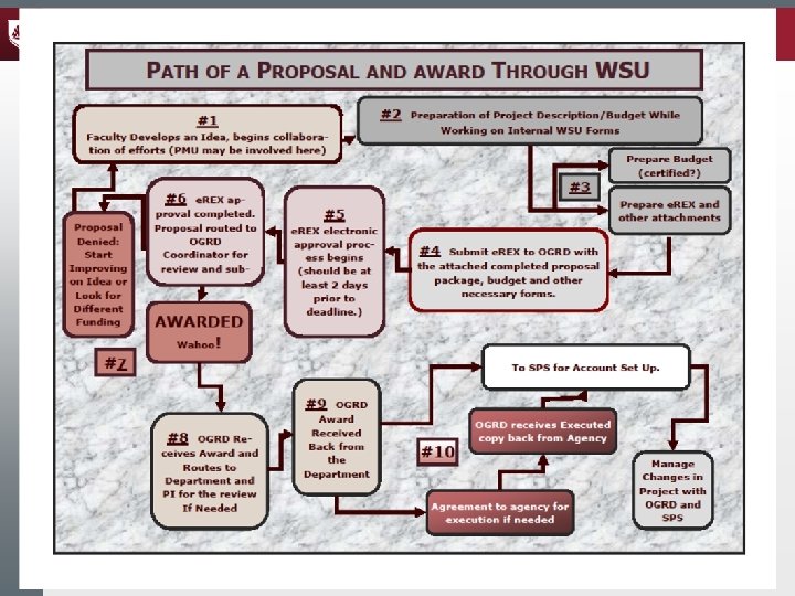 OGRD Updates • Hot Issues -- IP assignment forms for PI’s (Roche v. Stanford) & FCOI • Changes in Guidelines: Uniform Guidance implementation • Procurement Threshold • Reminder - Sign up for the WSU Research Admin list serve. Contact Derek Brown to signed up.