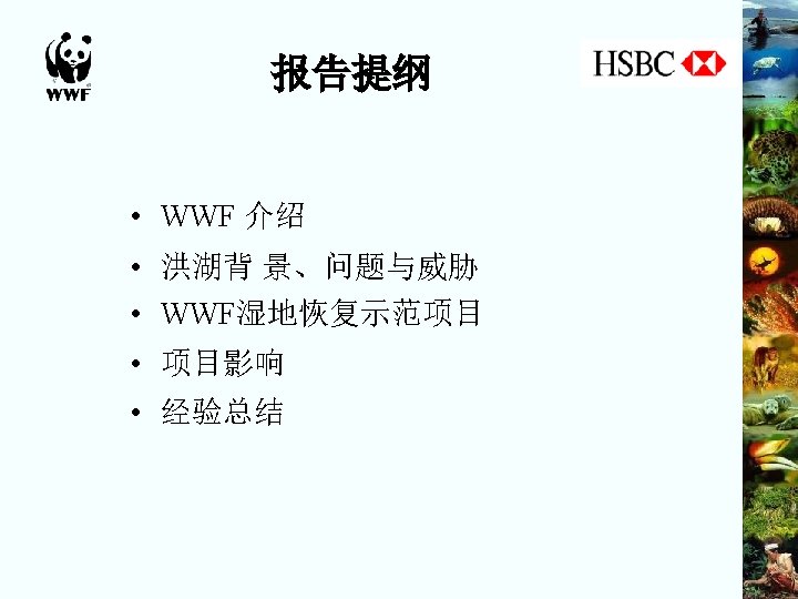 WWF China’s Operation CLIMATE CHANGE & ENERGY SPECIE S FOREST COMMUNITY DEVELOPMENT FRESHWATER&MARI NE EDUCATION