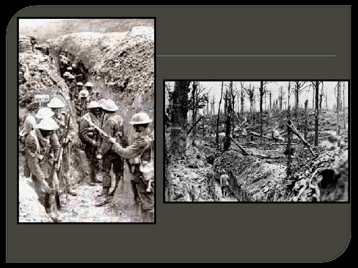 Trench Warfare Trench foot Contracted lice from rats Constant fear No man’s land Casualties (French had 1, 000 casualties in first 3 months of war)