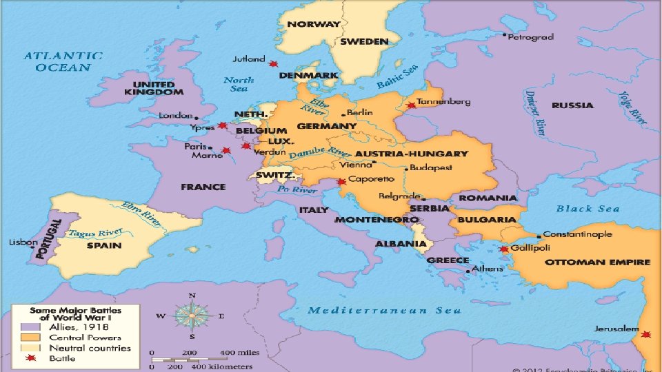 Two sides of the war Triple Entente (Allied Powers) Triple Alliance (Central Powers) Russia- leave 1917 Germany Serbia Austria-Hungary France Ottoman Empire Great Britain Italy United States- Enter 1917
