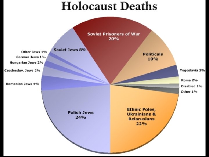 n Results n By the end of WWII, over 6 mil Jews + others had been murdered in the Holocaust (the systematic mass slaughter of Jews + other groups by the Nazis) End Section 3