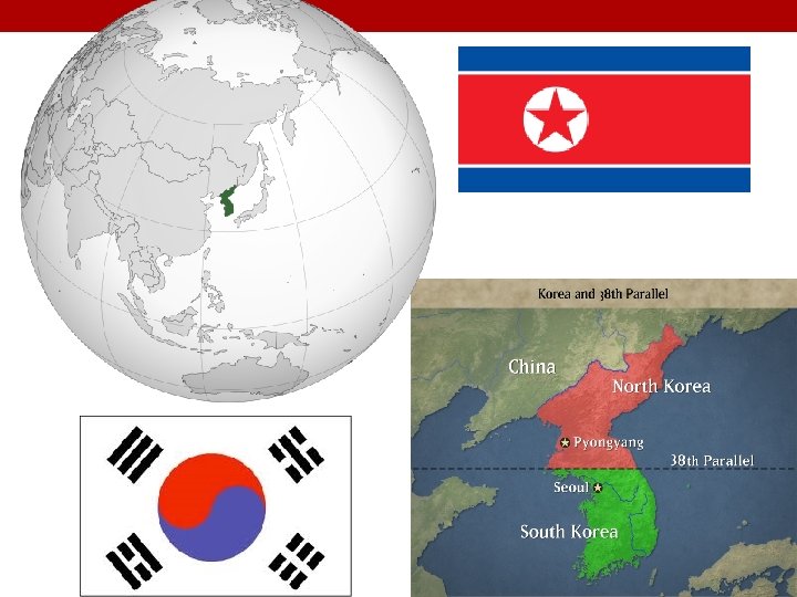 Korea North of 38 th Parallel • Soviet control • Communist • Democratic People’s Republic of Korea (North Korea) • Kim Il Sung • Capital - Pyongyang South of 38 th Parallel • American control • Democratic • Republic of Korea (South Korea) • Syngman Rhee • Capital - Seoul • June 1949 – only 500 American troops in South Korea • Soviets believed US would not fight to defend South Korea • Soviets backed North Korea with tanks, airplanes, and money to take over entire peninsula
