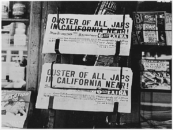 �Worst wartime treatment meted out to Japanese Americans �Executive Order 9066 authorized internment � 120, 000 Japanese Americans living on West coast were forced to relocate to detention camps � Fear that they would sabotage US war effort �$20, 000 redress in 1988 for having their civil rights violated
